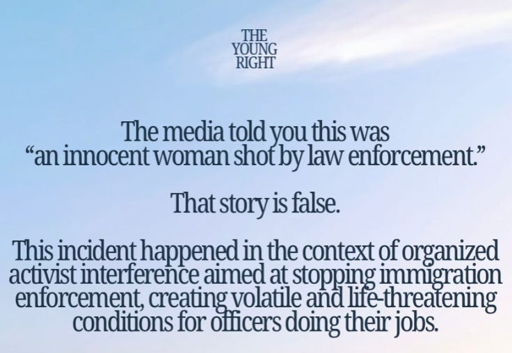 The Blue story is that she was trying to drive away from ICE officers who were running toward her car. The Red story is that she was trying to drive into the ICE officer who shot her, or at least interfering with a legal law enforcement operation. This is the view of the Trump administration, but perhaps more importantly it is the view of a wide array of right-leaning influencers and citizens.