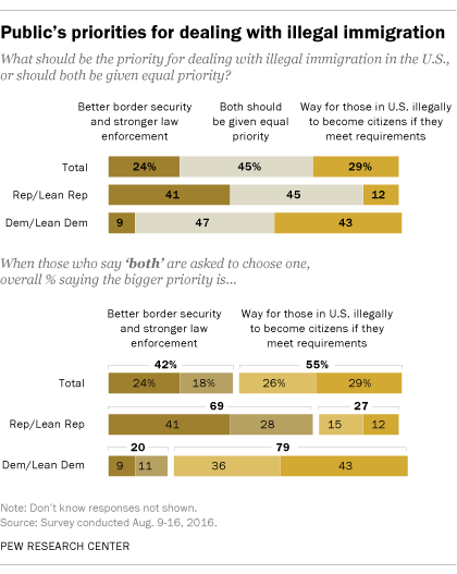 As we have discussed previously, there is a compromise that almost everyone will accept: strong border security and immigration enforcement combined with a path for unauthorized migrants already here to stay legally. Both are required: what we have now is strong border control without a good answer for those already here, while if there is a path to citizenship without strong border control then it’s an open invitation for the rest of the wold to come here. This combination is in fact a popular position.