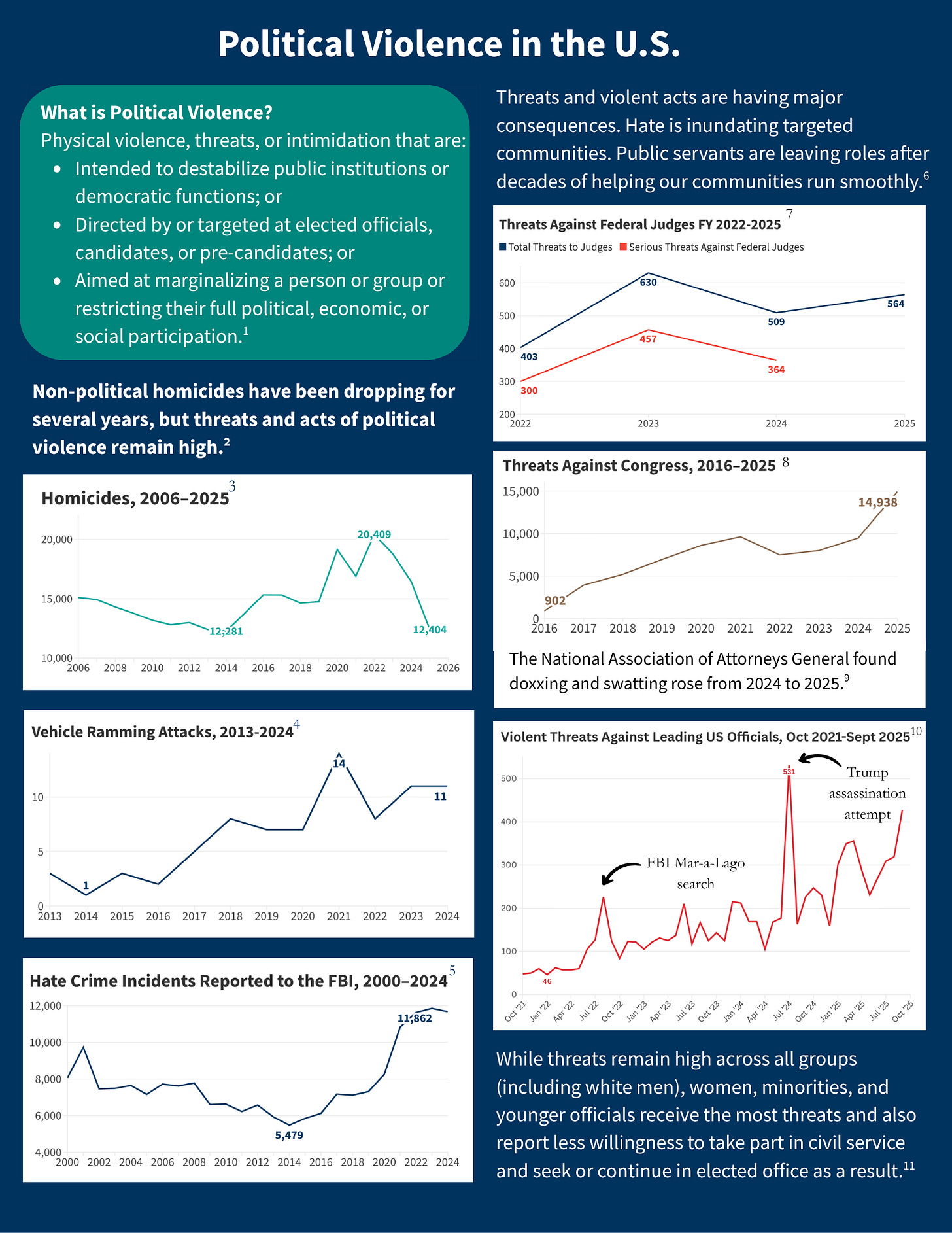the best way to understand what is happening today is that left/right ideology is breaking down. Instead, most people who commit political violence now are facing mental health challenges, and are drawing from a mix of ideologies and positions – remember that the first Trump would-be assassin was also interested in shooting then-President Biden. Increasingly, political violence is committed by people who are angry about AI, corporations, pedophilia, and other issues that do not break down along a left/right spectrum.