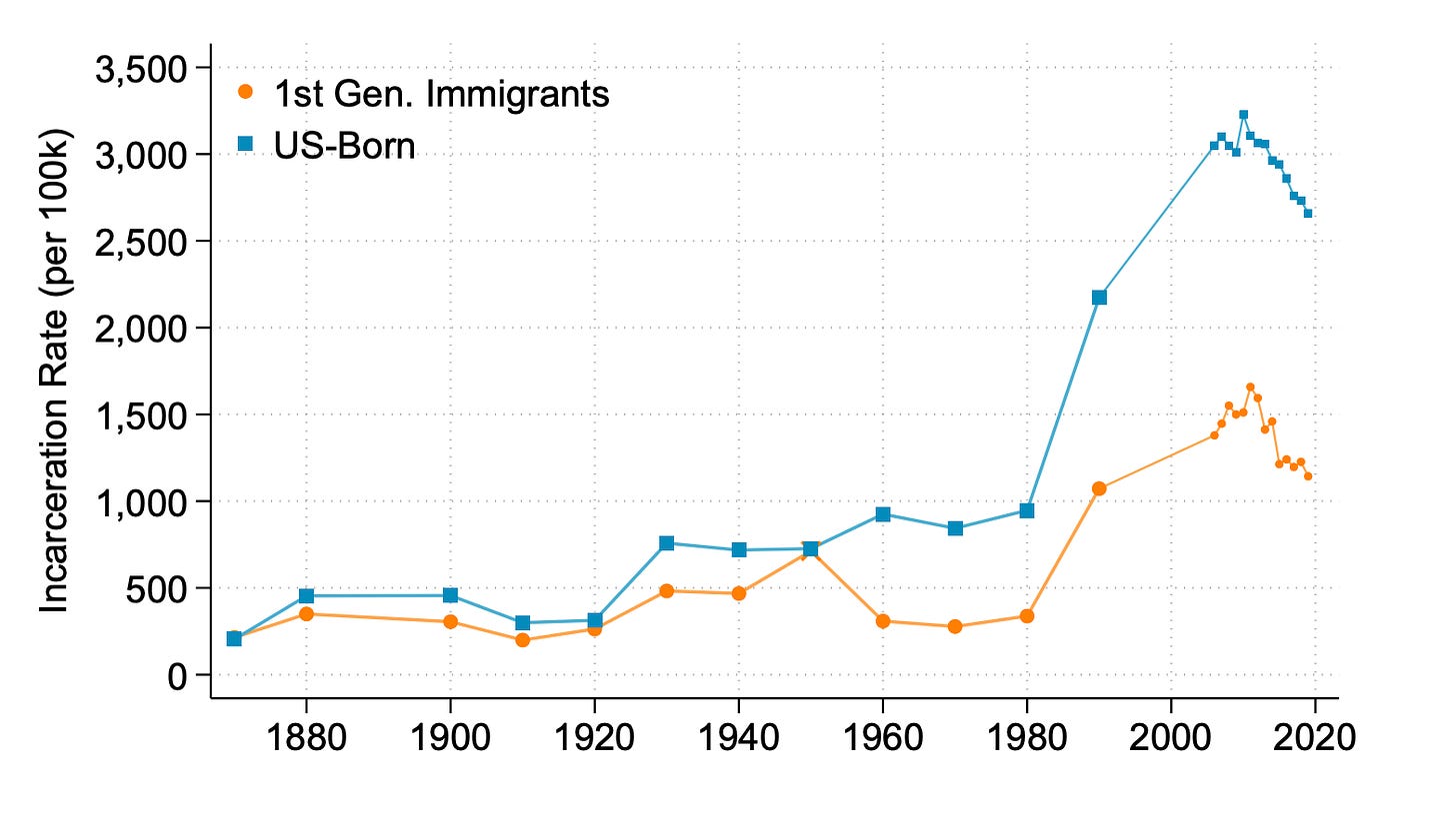 Maybe unauthorized immigrants are committing more crime though, since they’re already lawbreakers? Texas data says, no, they are arrested less often than authorized immigrants; but a Cato analysis says that nationwide, unauthorized immigrants are incarcerated at about double the rate of authorized immigrants. Everyone agrees that immigrants (of whatever kind) commit far fewer crimes than native-born Americans. This is so clear that even right-wing commentator Richard Hanania is angry that the government is lying about this.