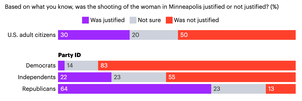 I organize the coalitions this way because Republican voters still overwhelmingly support the deportations, ICE, and Trump, and say the shooting of Good was justified.