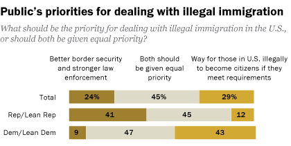 The popular solution is strong border enforcement combined with a path to legality for people already here. We have the former now (and didn’t under Biden), while we’ve never really had a full path to citizenship or normalization for all unauthorized migrants. This solution is popular, as we’ve said before. Here’s Pew’s data: